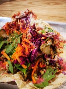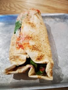 Gone are the days of a simple ham and cheese sandwich. Instead, this vibrant and healthy flatbread (which was folded into a burrito for convenience) was bursting with delicious goodness.