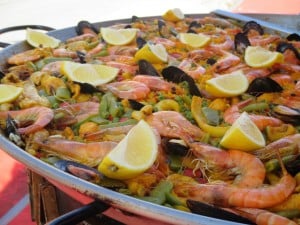 Spaniards eat their main meal during the day, taking hours to relax and enjoy their food with family and friends or indulging in a little siesta before returning to work in the evening. Restaurants don’t open until 8 or 9pm and this is when the bars come to life with locals enjoying wine and accompanying tapas for soakage (yes, this is their modern day purpose). You will often be served a ‘pincho’ – a mouthful that comes with the price of your drink or you can order a selection of tapas to accompany your wine. Each region in Spain has its own tapa specialties, just like each region has a signature rice dish.